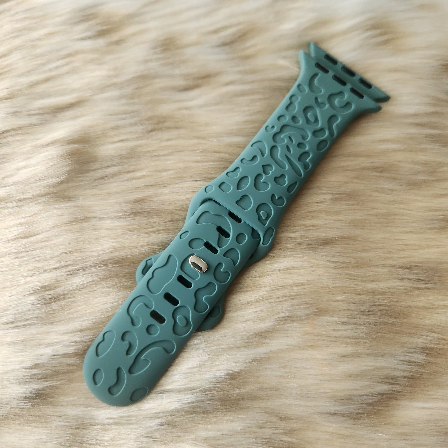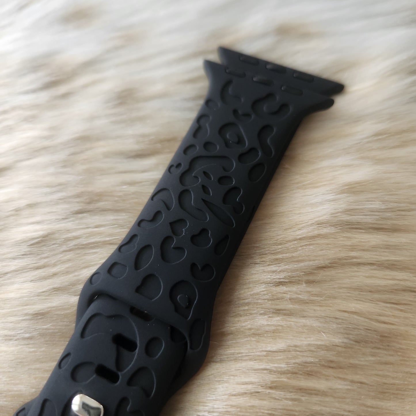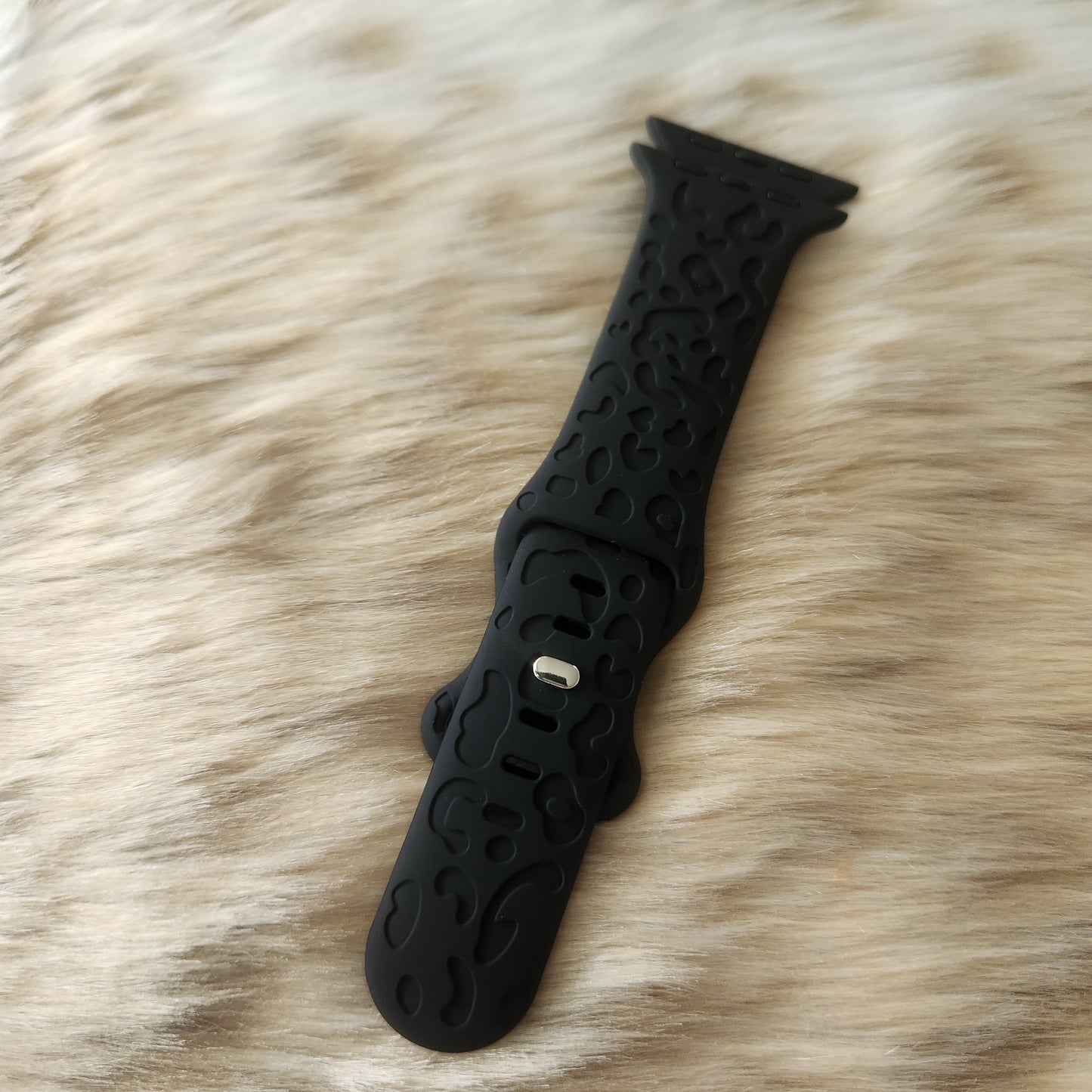 Size 42/44/45MM/Large Add a touch of wild style to your watch with our Leopard Apple Watch Bands featuring a sleek leopard print engraved design. These bands are perfect for those who want to showcase their unique personality. Made from high-quality silicone, they are durable, comfortable, and easy to clean. Upgrade your watch game with our stylish and versatile Leopard Apple Watch Bands