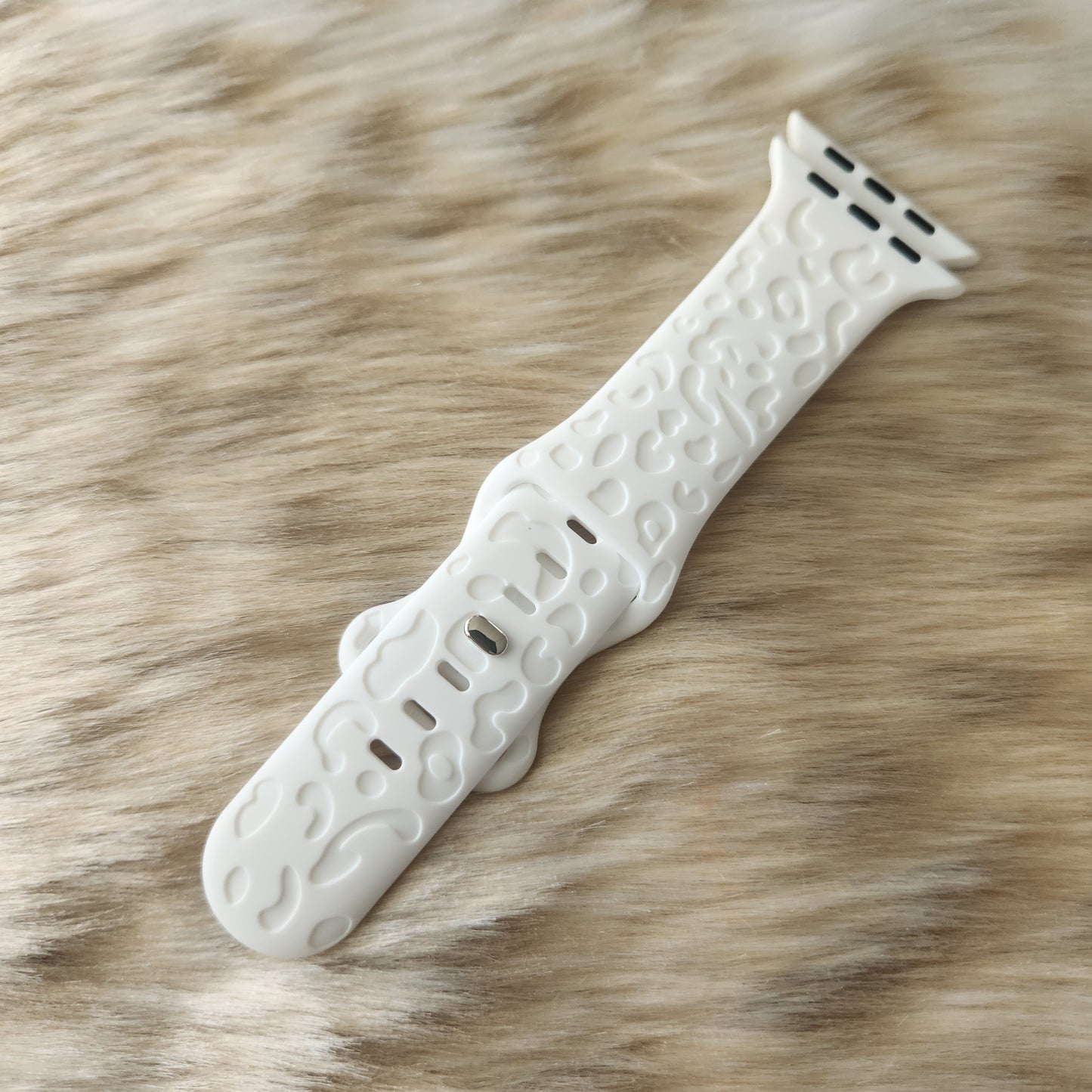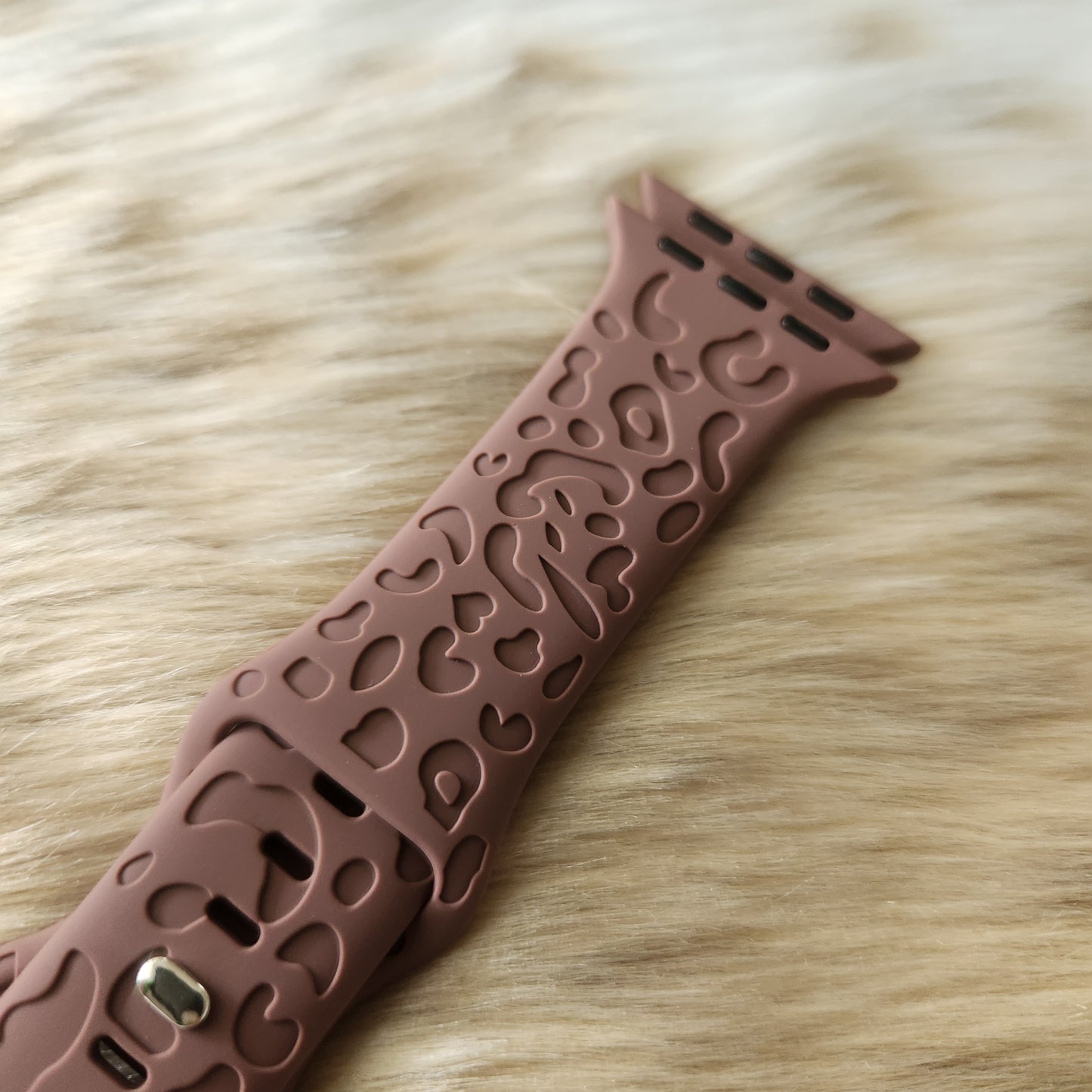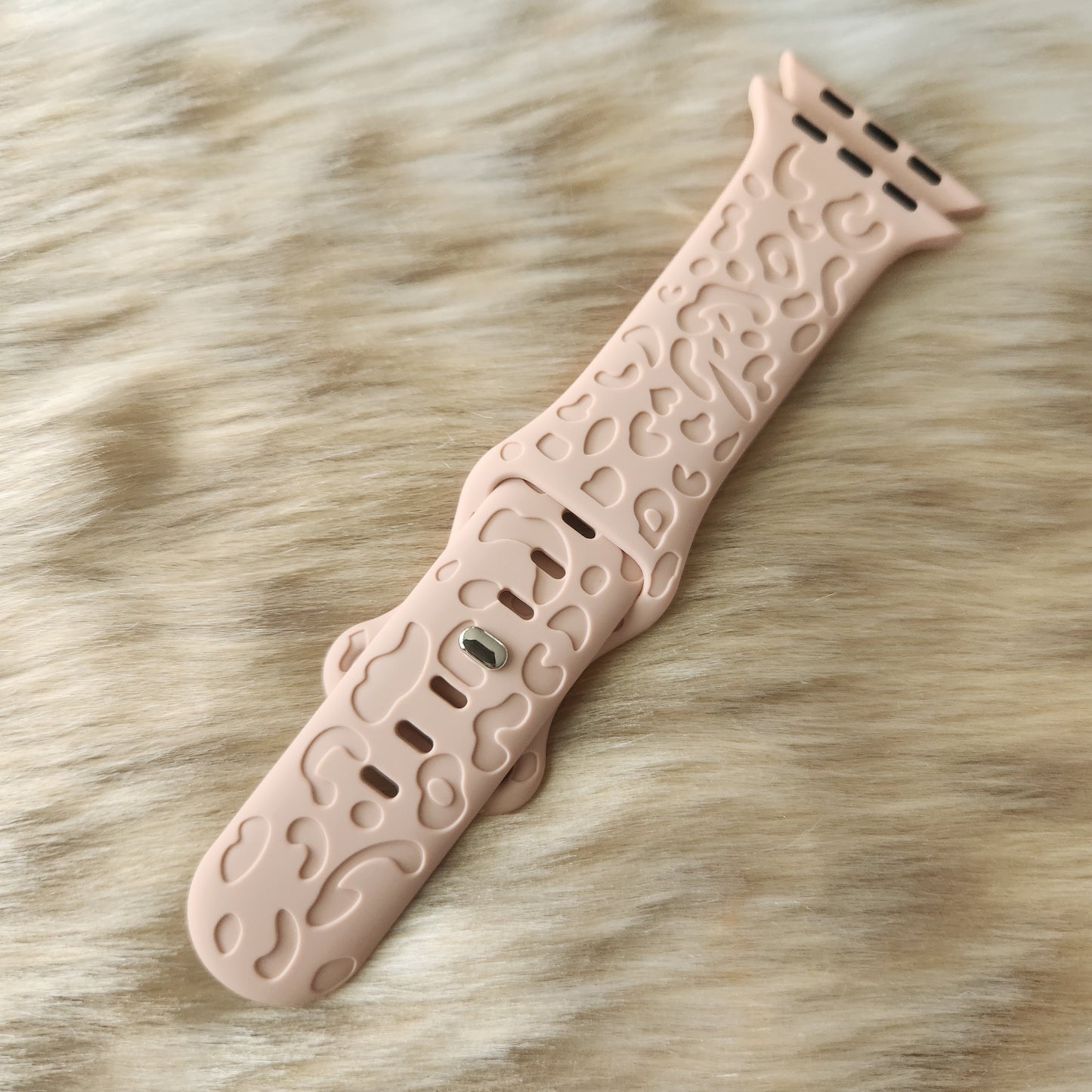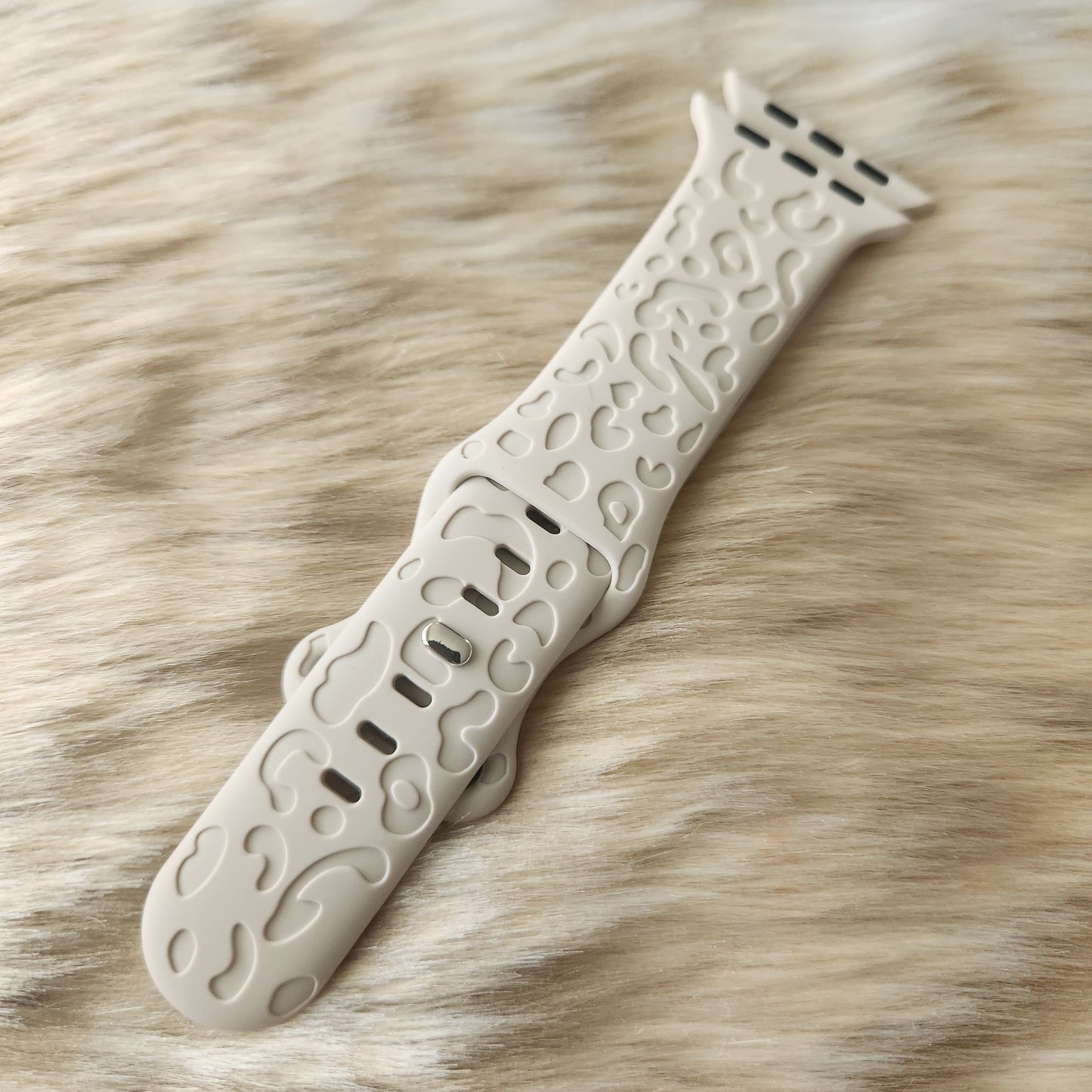 Size 42/44/45MM/Large Add a touch of wild style to your watch with our Leopard Apple Watch Bands featuring a sleek leopard print engraved design. These bands are perfect for those who want to showcase their unique personality. Made from high-quality silicone, they are durable, comfortable, and easy to clean. Upgrade your watch game with our stylish and versatile Leopard Apple Watch Bands