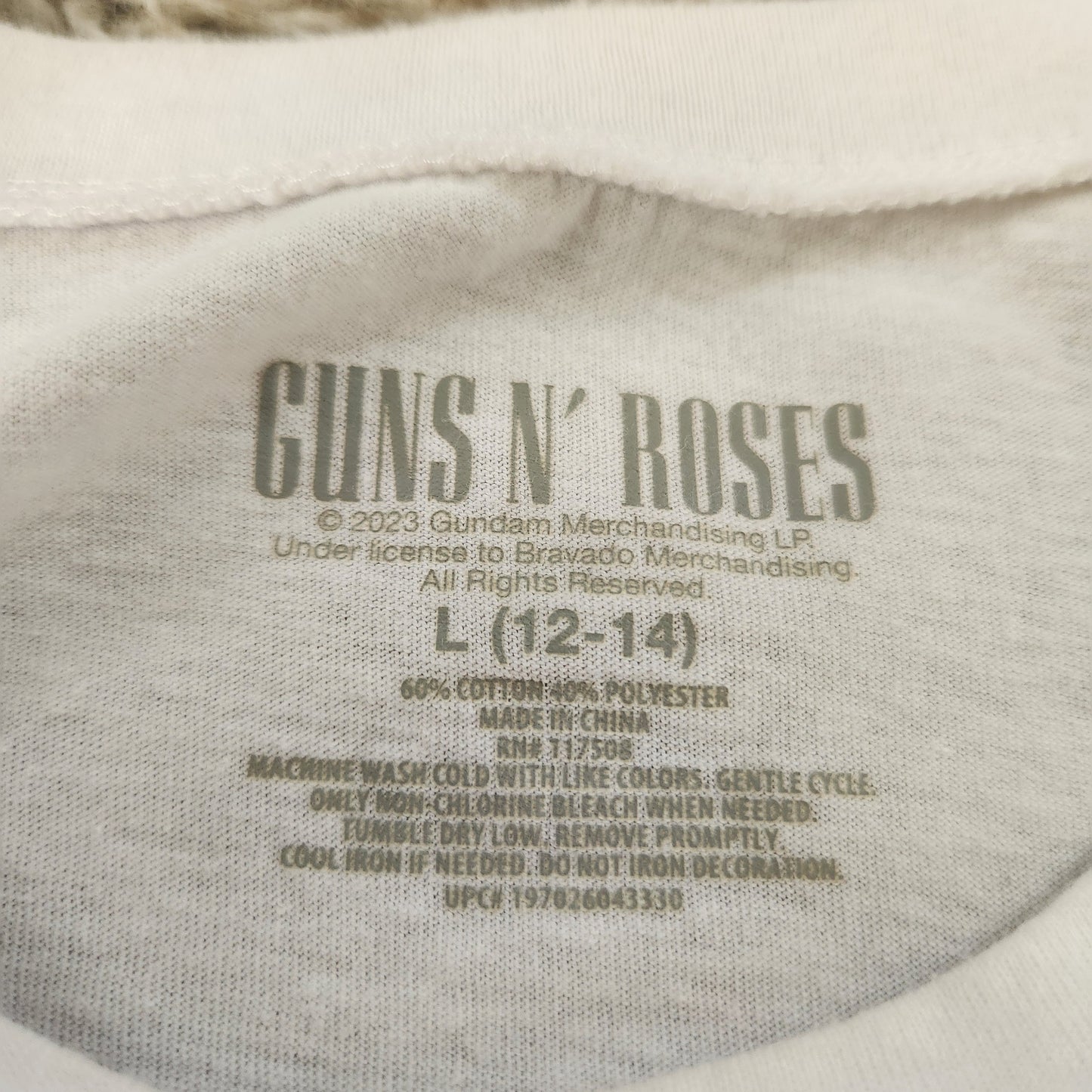 White shirt sleeve Bravado Merchandising T-shirt. Women's size Large