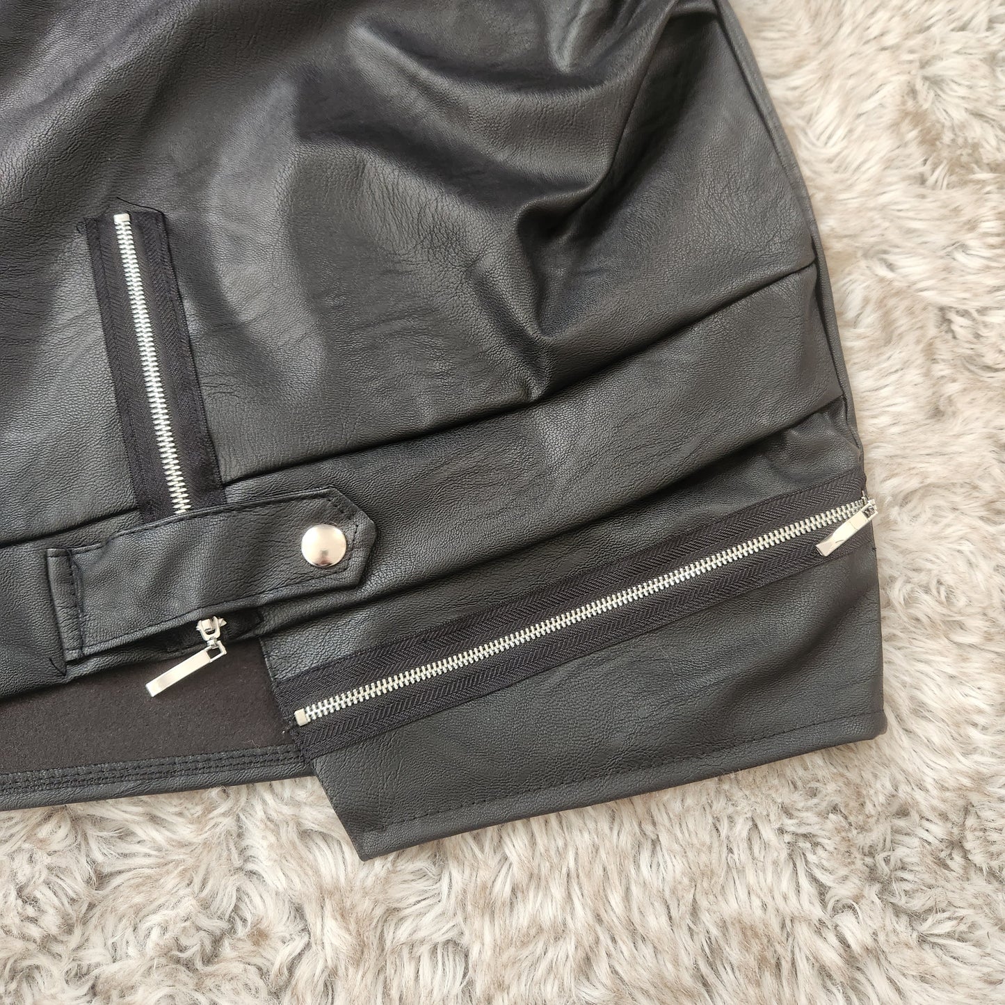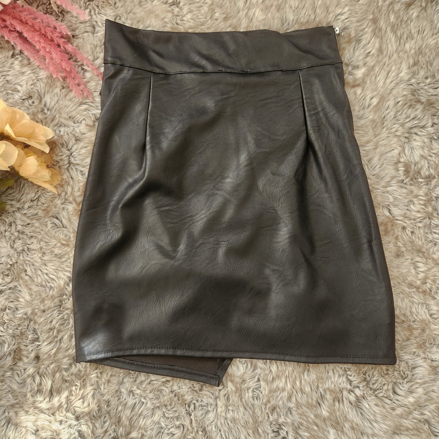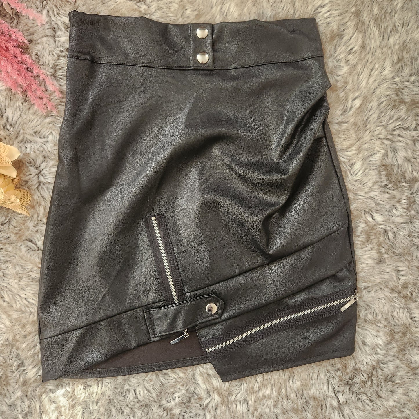 Revamp your wardrobe with our Gemma Mini Skirt – a chic blend of edgy style and feminine flair. The irregular hem adds a modern twist, creating a fashion-forward silhouette that stands out. Zipper details further elevate the allure, providing an extra touch of attitude. Versatile and on-trend, this mini skirt is perfect for both day and night looks. Crafted from high-quality faux leather, it offers the luxe appeal without compromising on your values. Elevate your fashion game with a wardrobe essential that makes a statement!