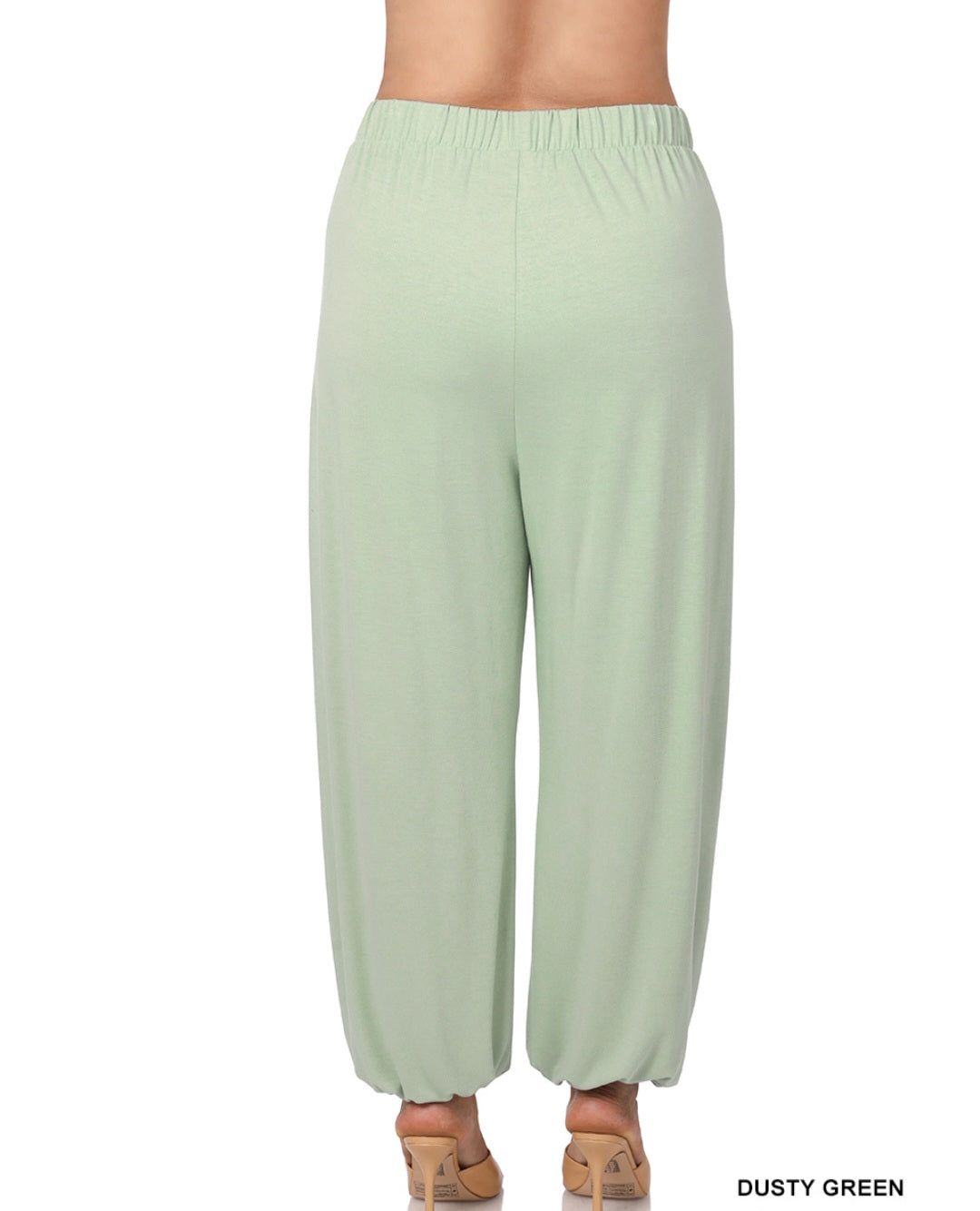 Stay comfortable and stylish in these dusty green pants, made from ultra-soft fabric with side slits for added movement and flair. Featuring a stretchy waistband and elastic ankle hems, these relaxed-fit pants are perfect for everyday wear or lounging in laid-back style.