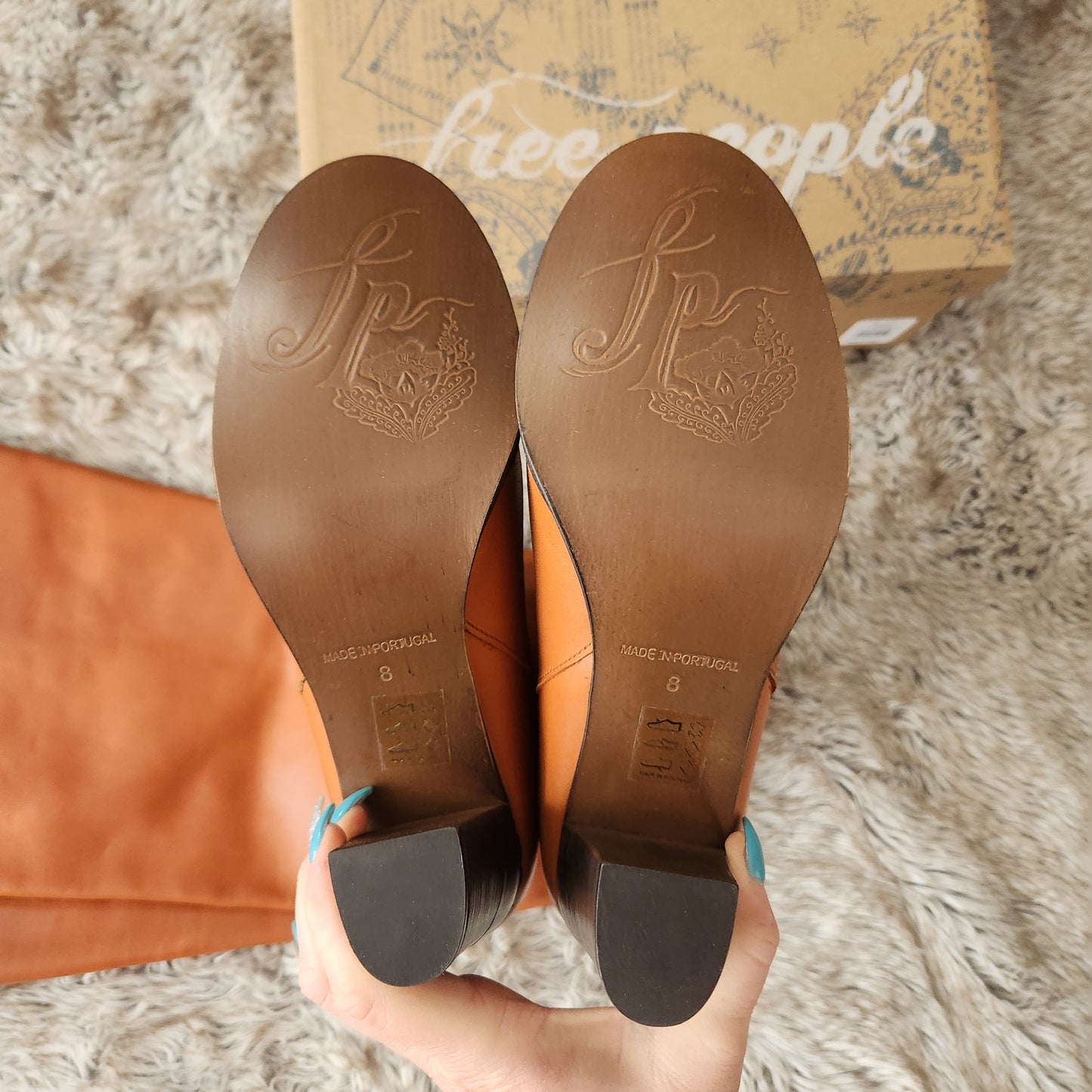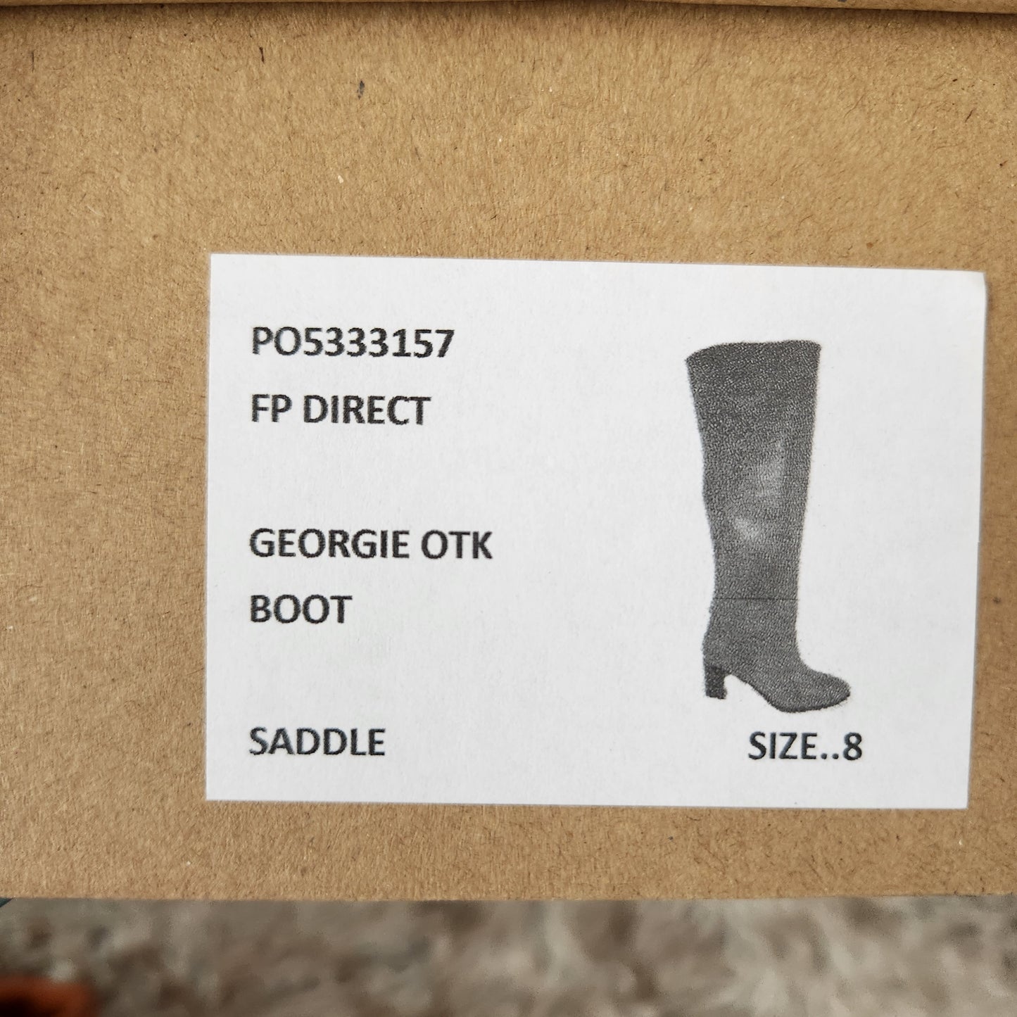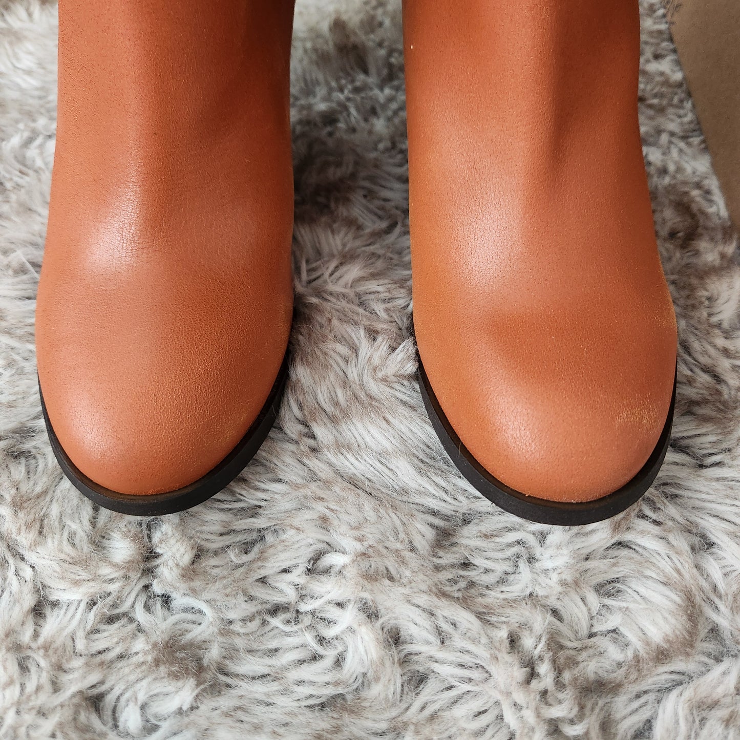Round toes, stacked block heels, over the knee slouchy fit saddle brown leather boots