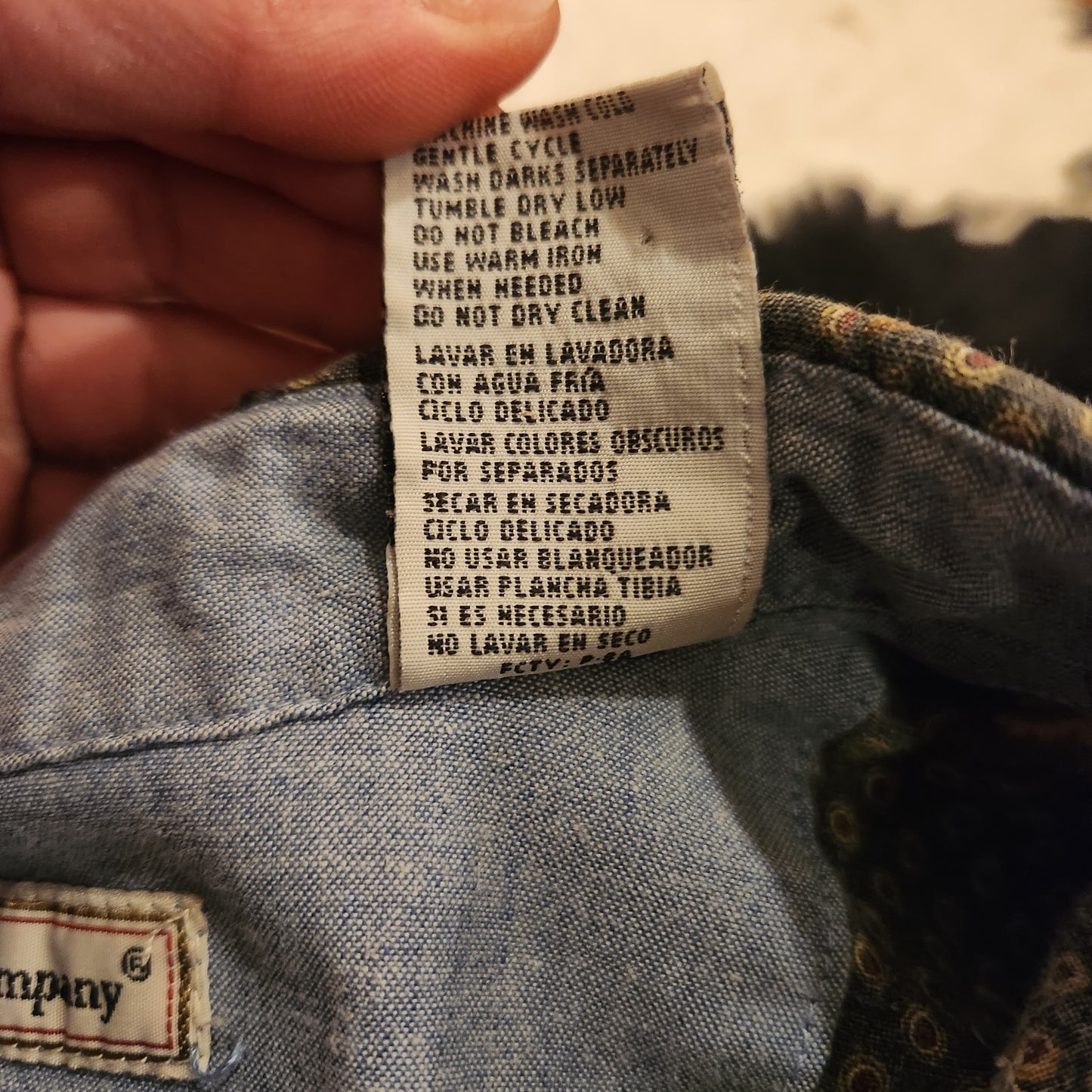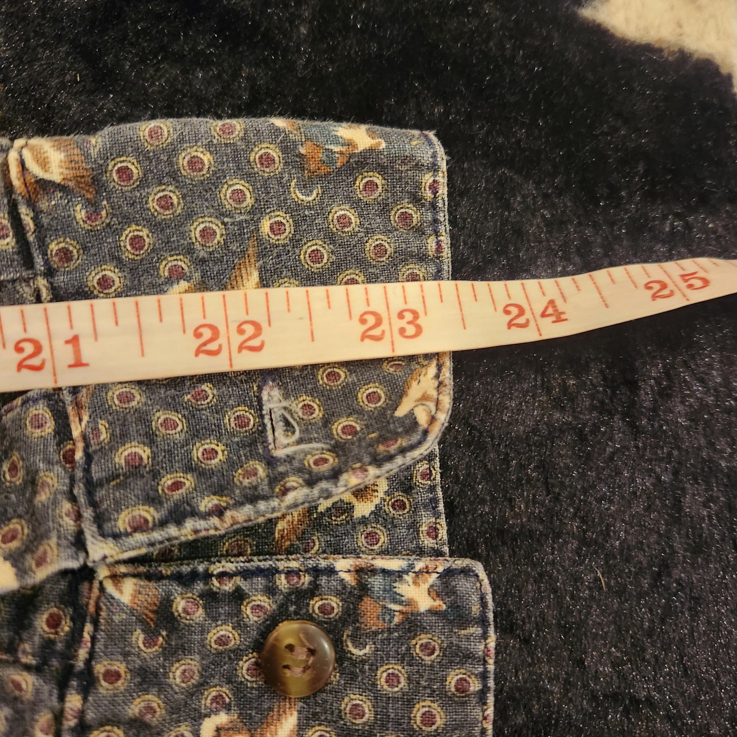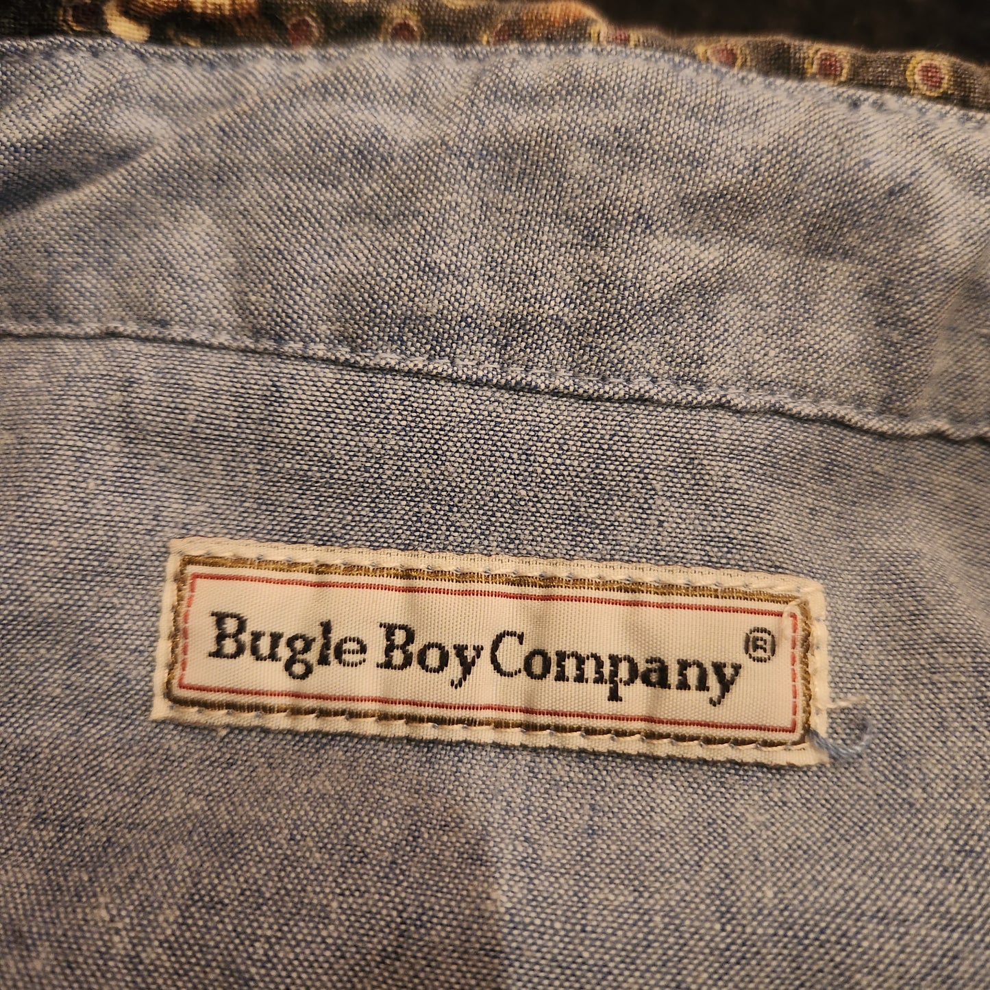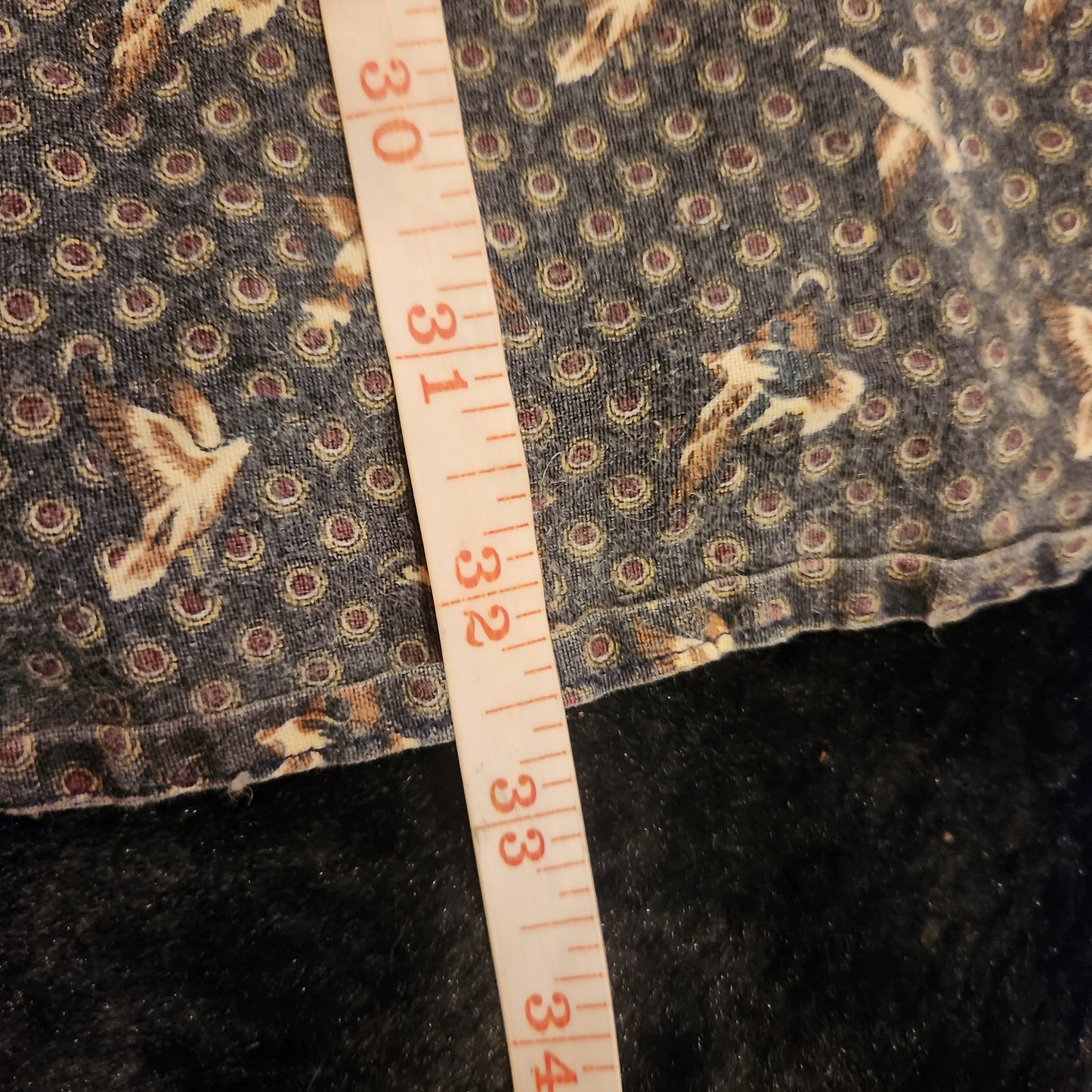 Blue background, long sleeve, button down vintage shirt with all-over duck print. Men's size XL