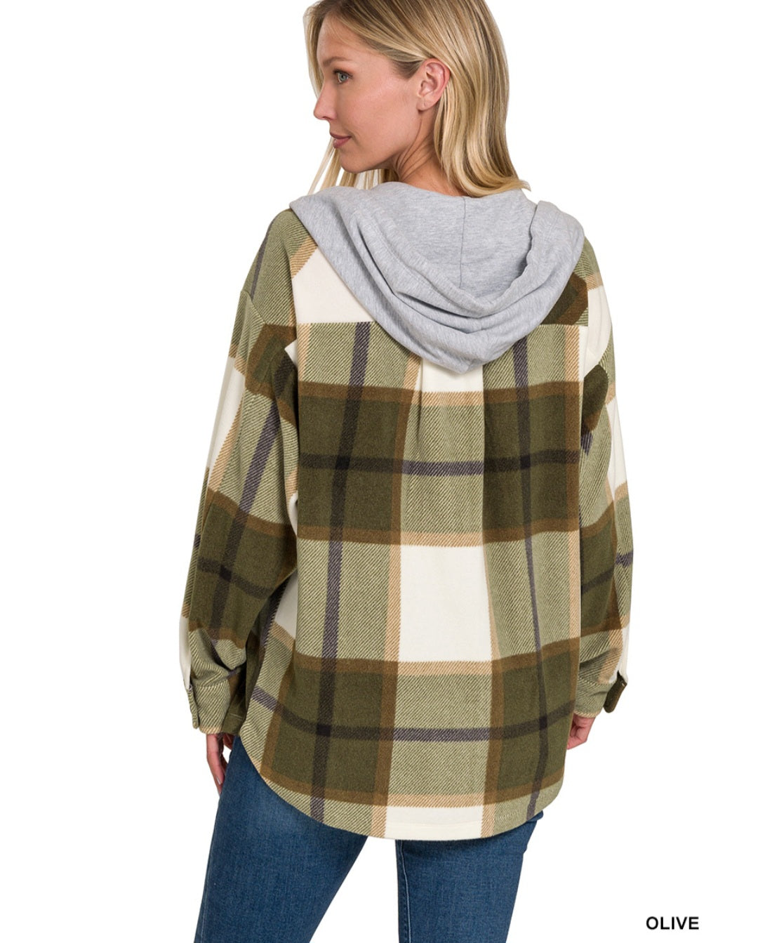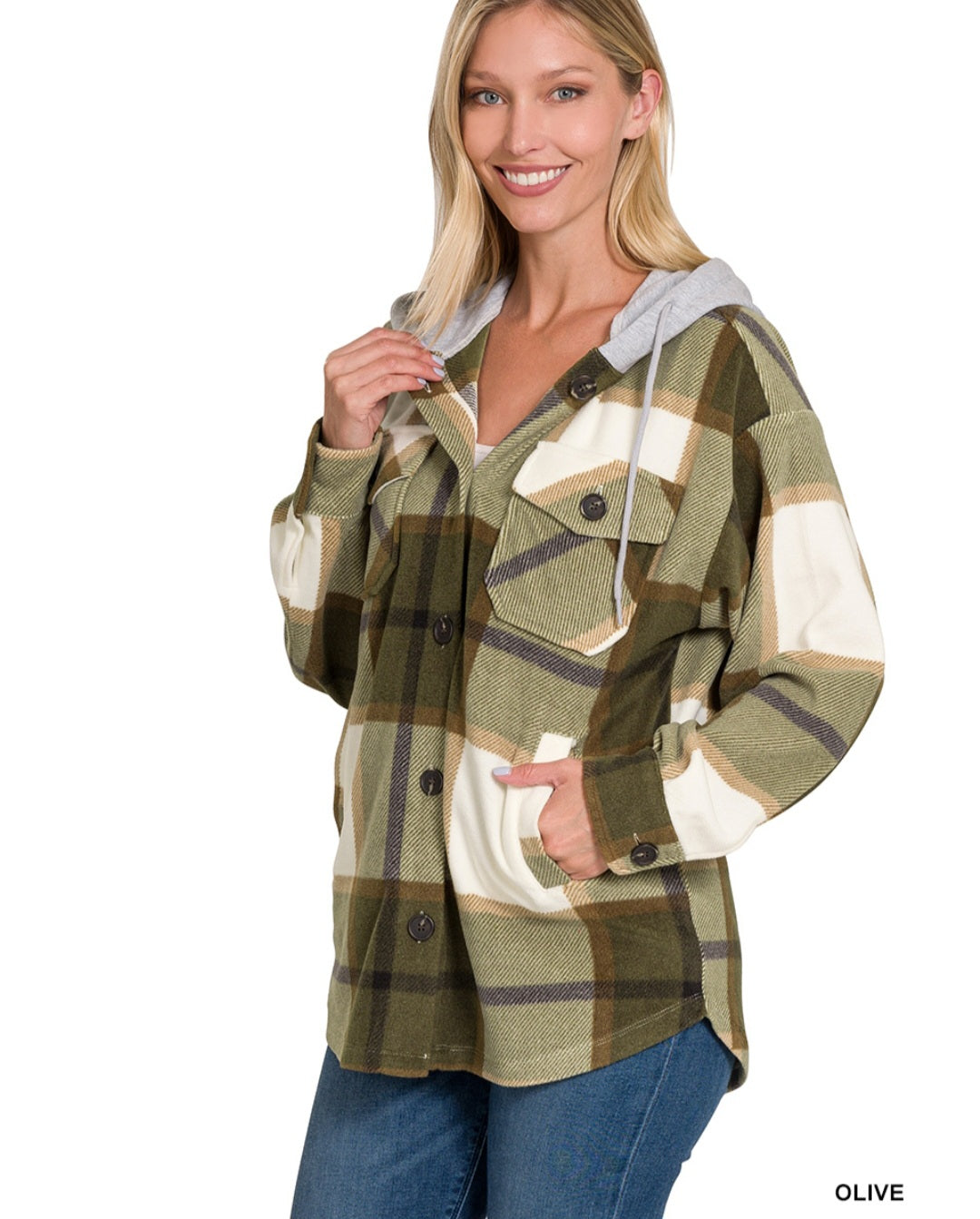 Stay cozy and stylish in this olive green plaid hooded shacket, the perfect blend of a shirt and jacket for effortless layering. Featuring a soft flannel texture, classic plaid design, and attached hood, this versatile piece is ideal for casual fall and winter outfits.