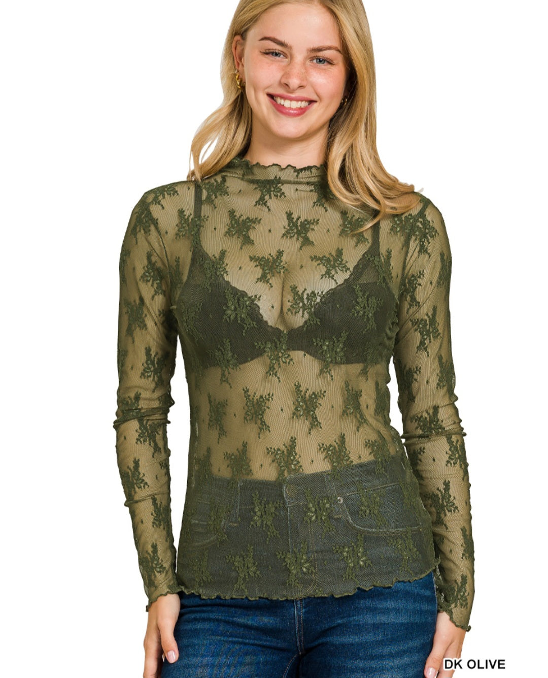 Elevate your style with this long sleeve mesh top, designed to add a touch of elegance and allure to any outfit. Perfect for layering or wearing alone, this sheer lace blouse offers a chic, feminine look for both casual and dressy occasions.