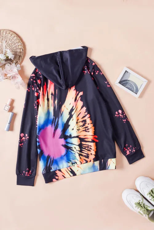 Stand out in bold color with this reverse tie-dye hoodie, featuring a black base splashed with vibrant rainbow hues for a one-of-a-kind look. Soft, cozy, and eye-catching, this hoodie is perfect for adding artistic flair to your casual wardrobe.