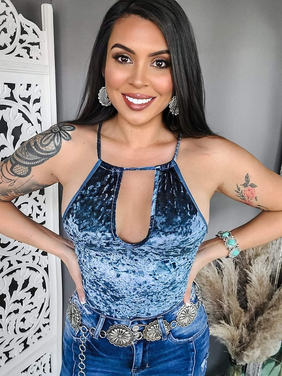 Regular price $15.00Dive into luxury with our Torie Velvet Bodysuit, featuring a tantalizing keyhole cutout detail. This chic bodysuit combines the opulence of velvet with a modern twist, creating a head-turning ensemble for any occasion. The rich blue hue adds a touch of elegance, while the keyhole cutout offers a daring, yet tasteful, glimpse. Perfect for a night out or a special event, this bodysuit seamlessly blends comfort and style. Elevate your wardrobe with this on-trend piece – shop our Torie Velvet Bodysuit now for a statement-making look!