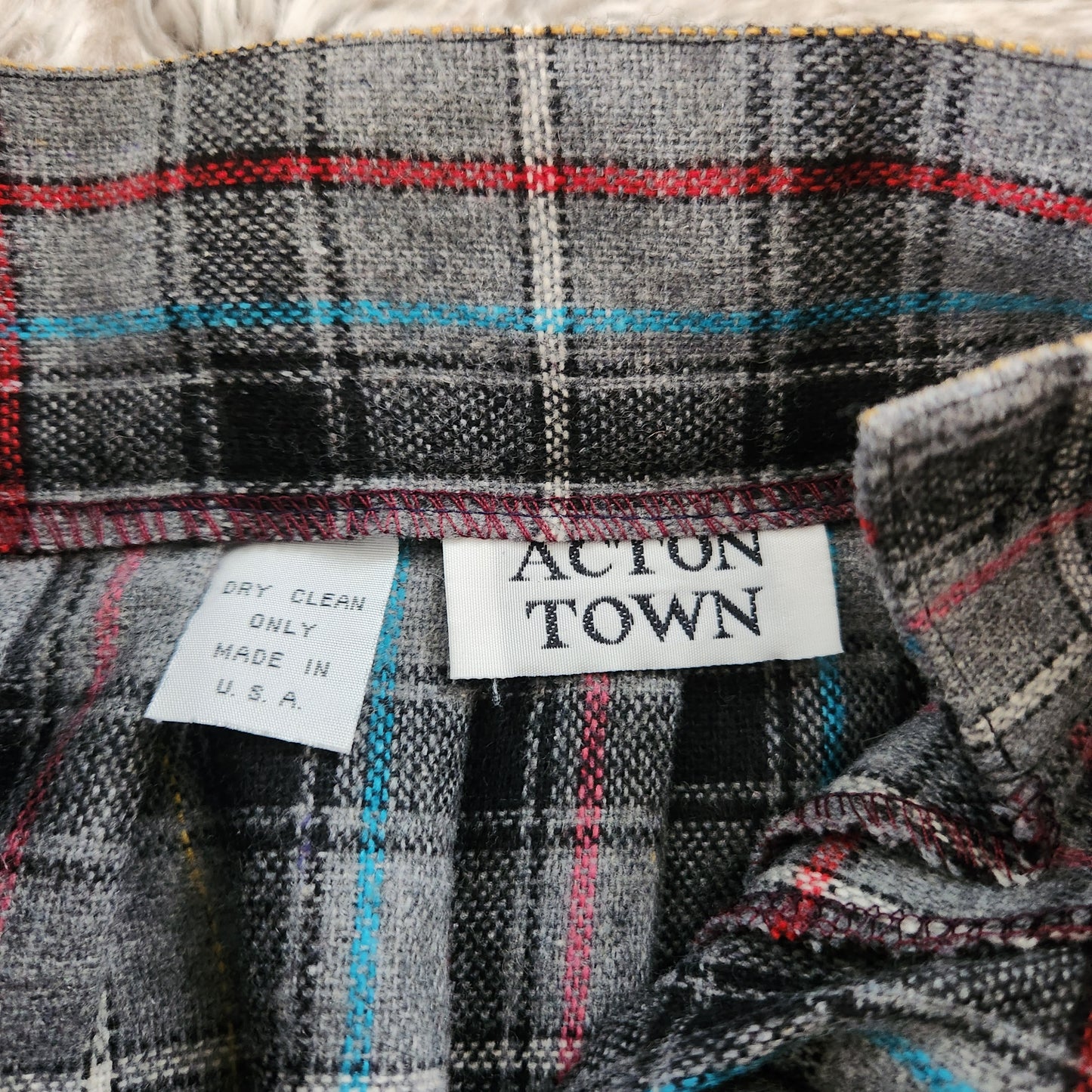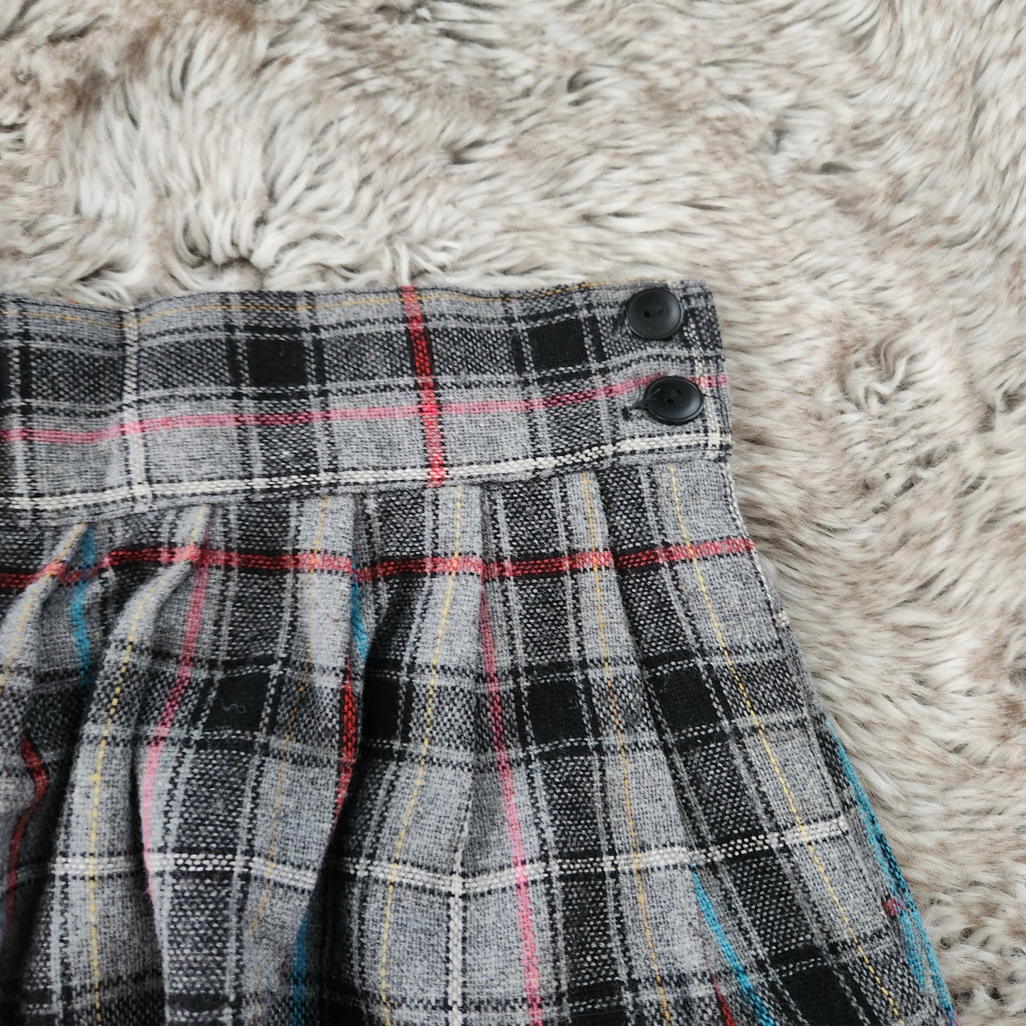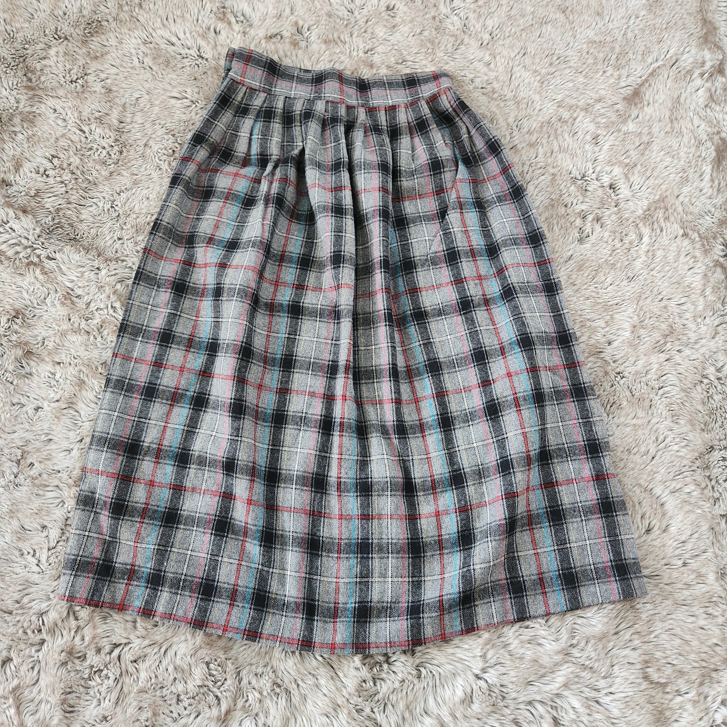 Gray plaid midi skirt with side button closure
