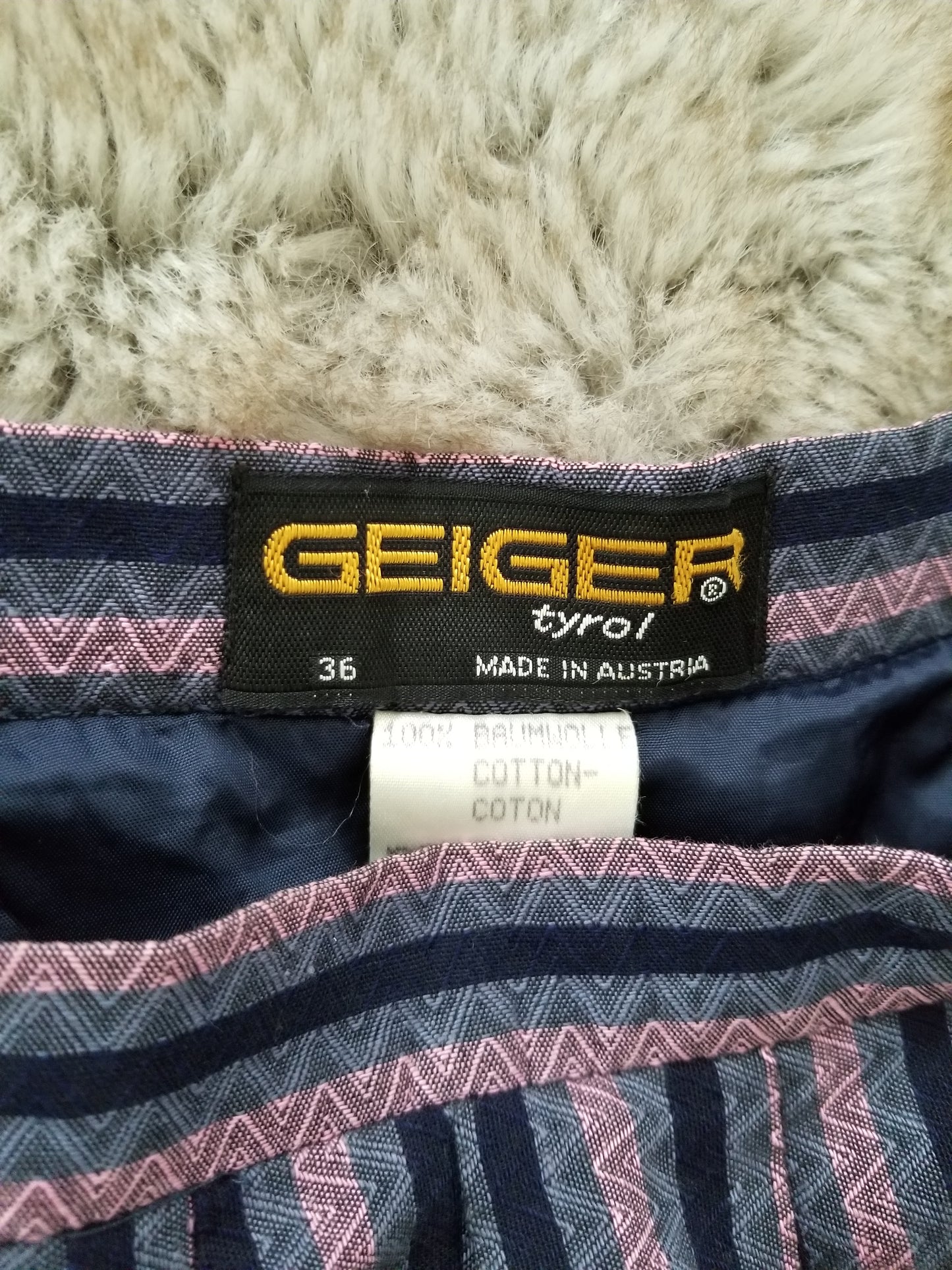 Regular price $50.00Size EU 36. Vintage Geiger circle skirt. No flaws, excellent vintage condition. Well made skirt with attached slip lining