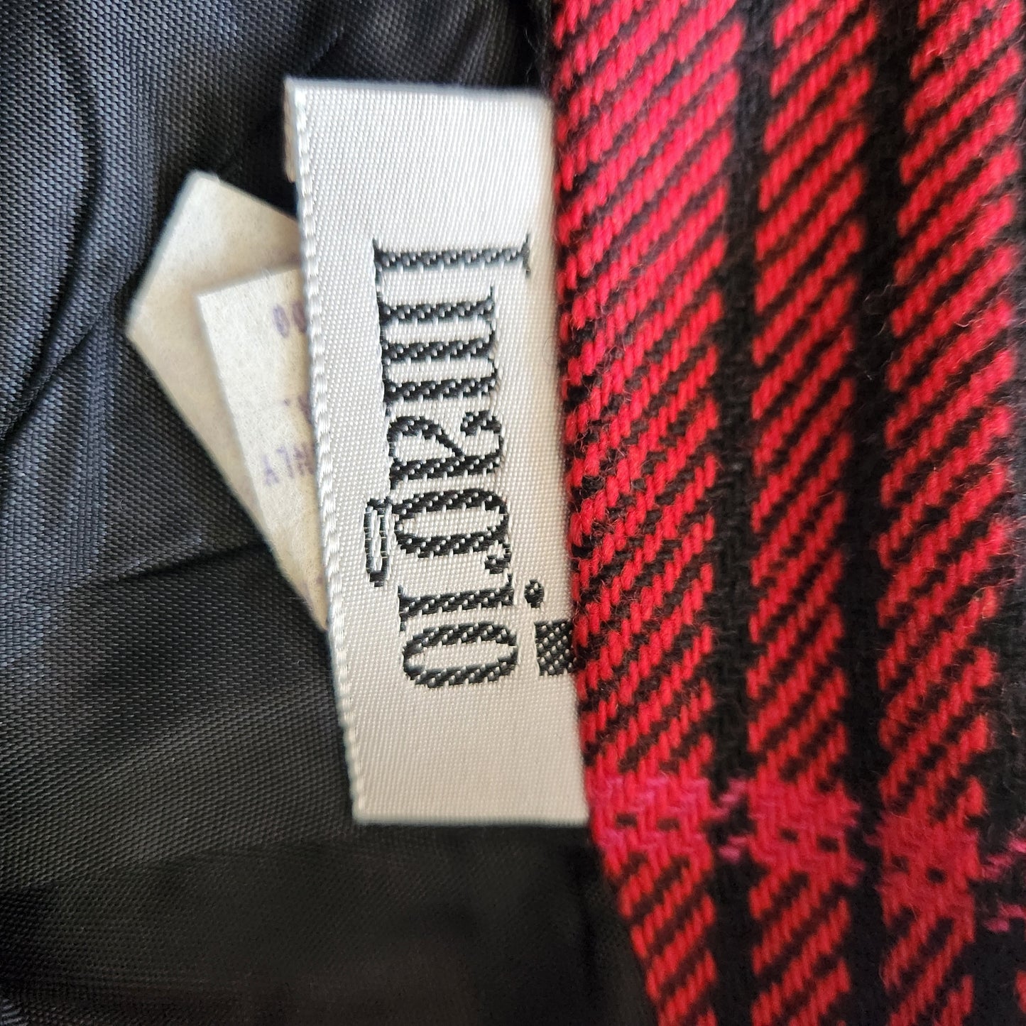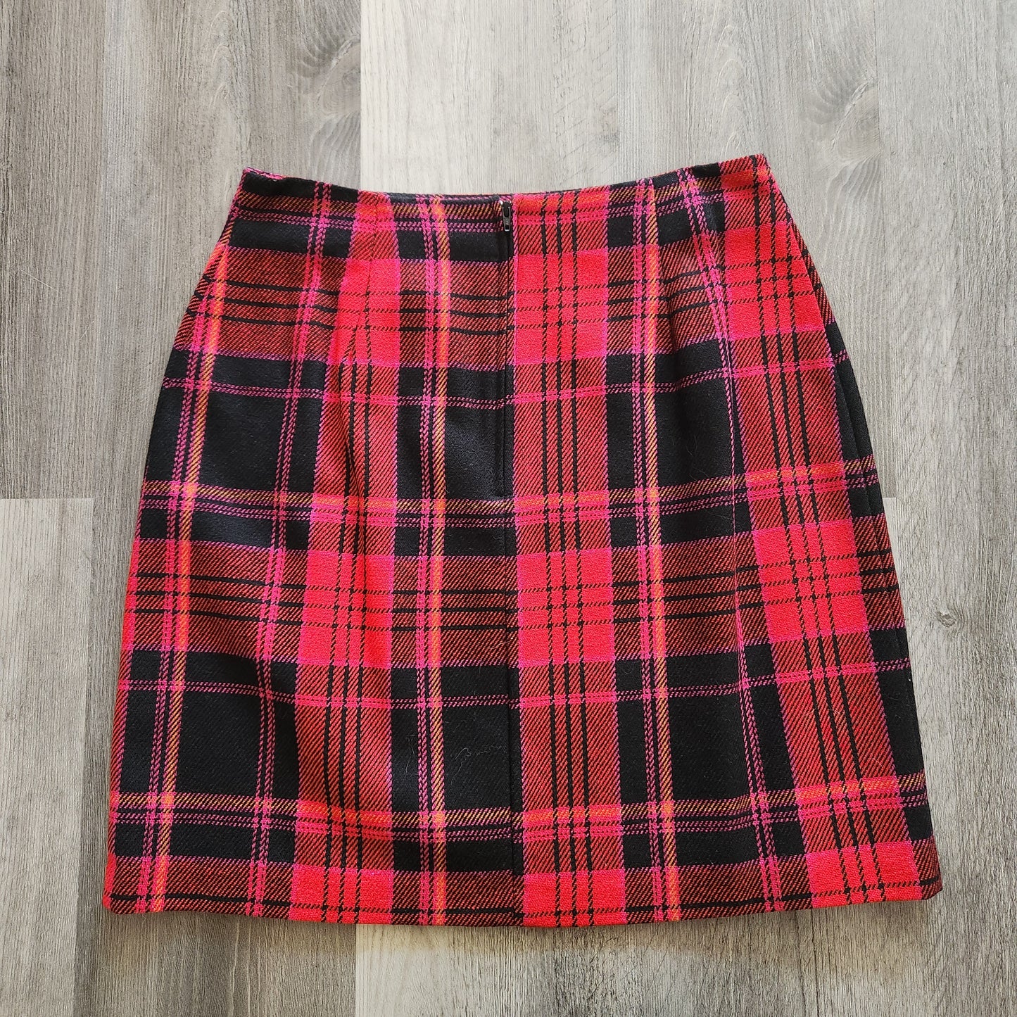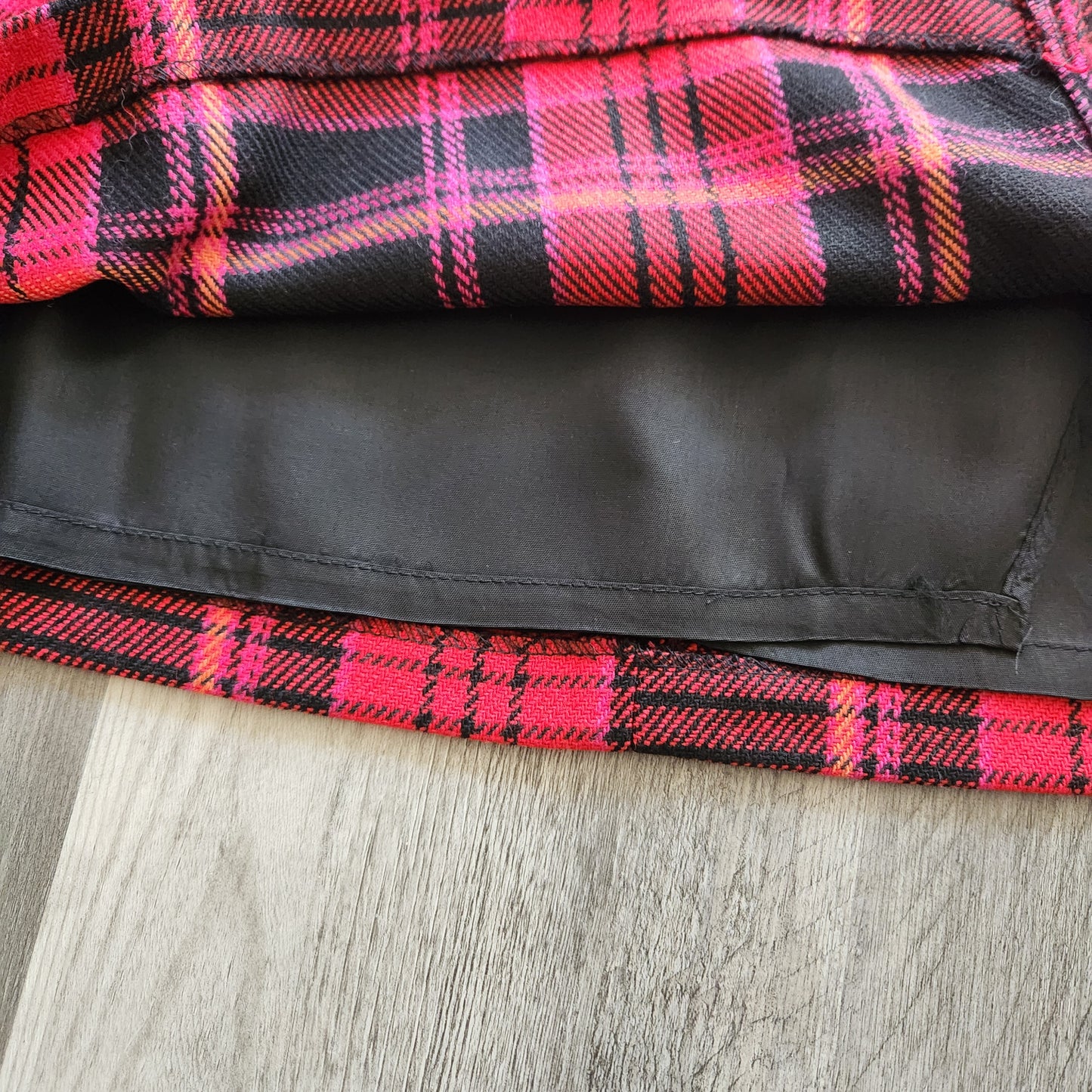 Black and red wool blend, fully lined mini skirt with small slit in back