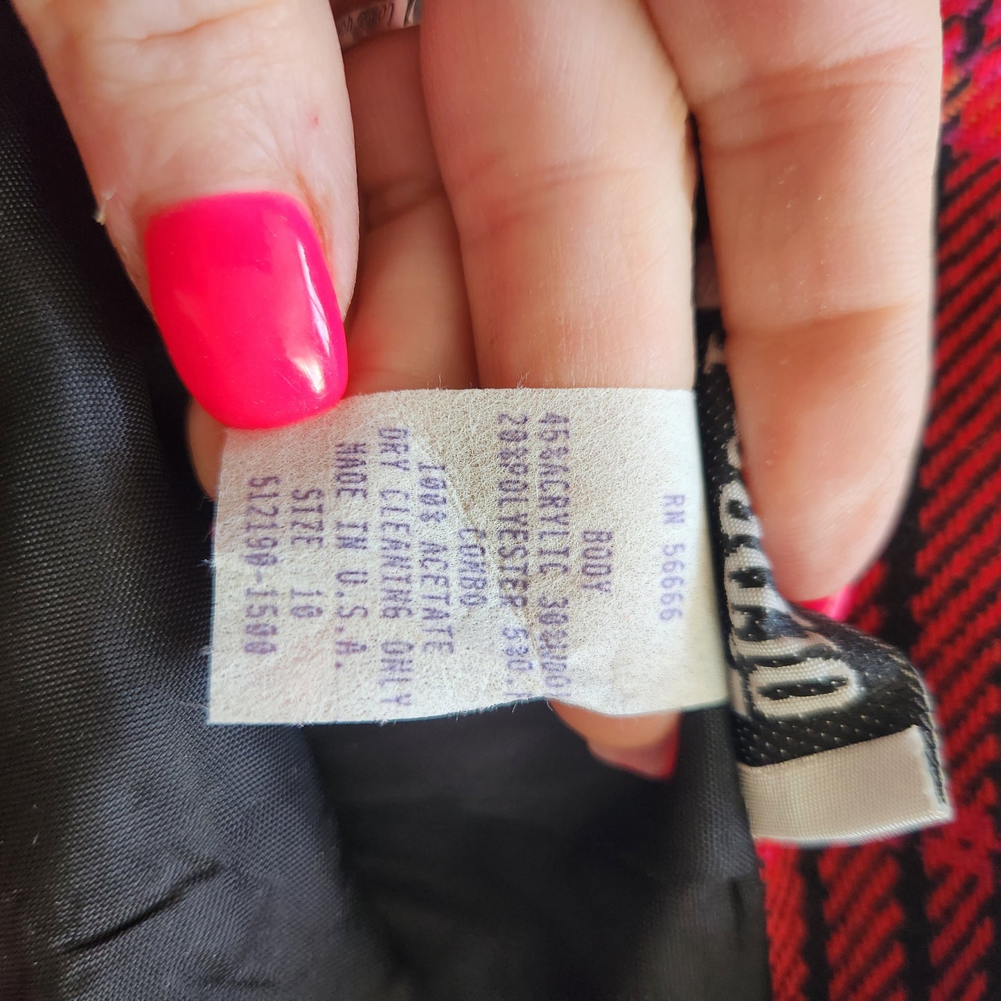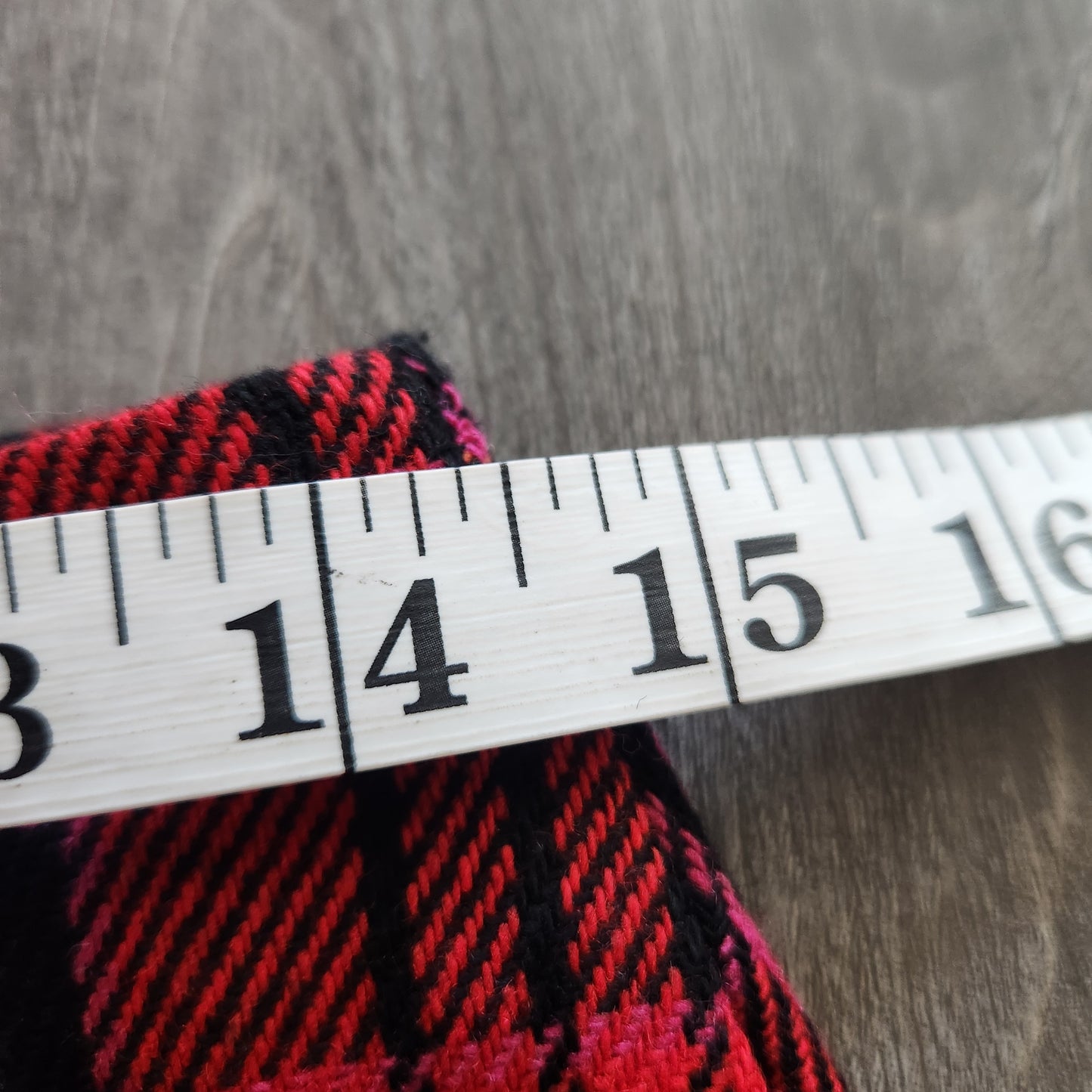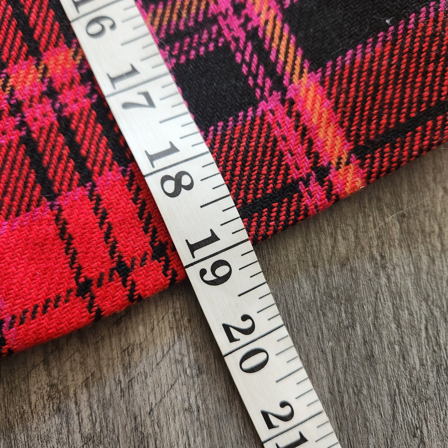 Black and red wool blend, fully lined mini skirt with small slit in back