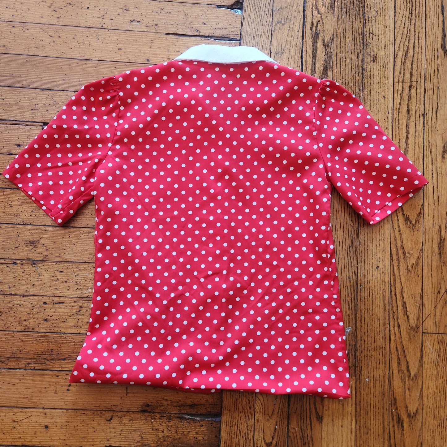 Pins and Needles Vintage Puff Sleeve Collared Short Sleeve Red Polka Dot Shirt